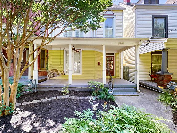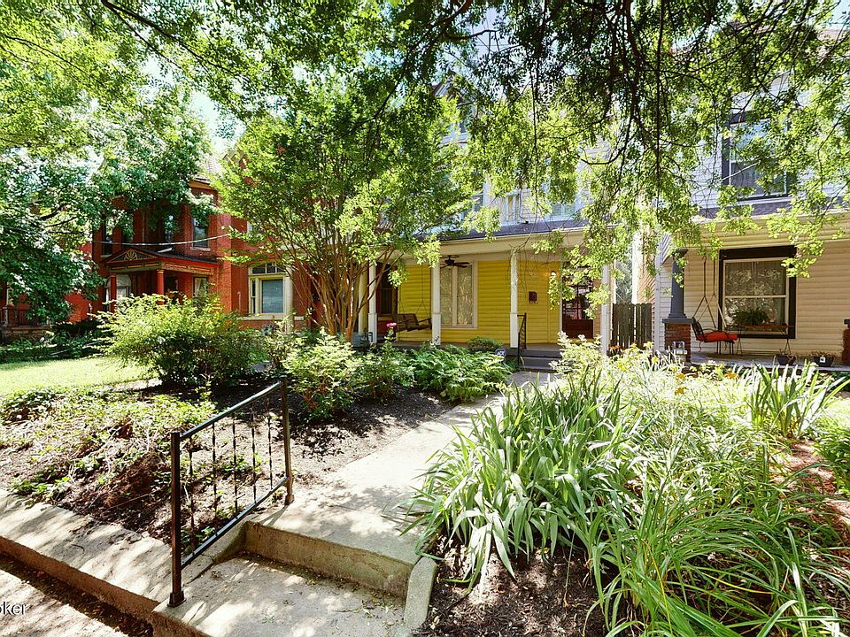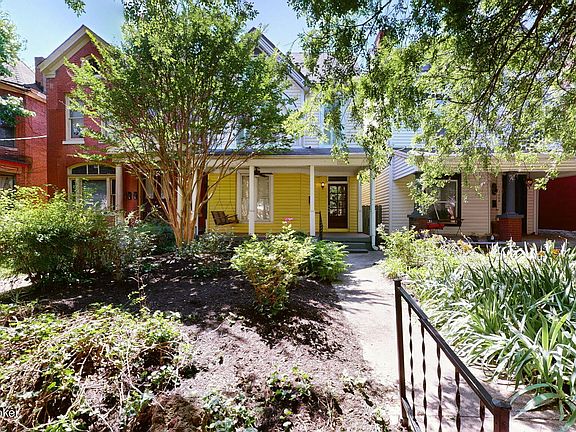 This classic Circa 1894 Victorian with 2389 Sq. Ft. home is in Historic Old Louisville. Highland Hardwood Flooring has just finished repairing, sanding and refinishing all the original yellow heart of pine flooring and stair treads. They are now beautiful. This home has 3 generous bedrooms & 3 full baths plus an unfinished attic which has been spray foamed. The fully covered front porch is a great place to enjoy coffee in the mornings or cocktails in the evenings and chat with your wonderful neighbors. Yes, the porch swing can remain. Open the front door to the immense foyer with a large chandelier and original natural fireplace. To the left is the formal living room with a huge window looking out onto the porch, a new farm style chandelier and another fireplace. Behind the living room is the original staircase twisting up to the 2nd floor, there's even a 'coat closet' cleverly hidden under the stairs! Behind the foyer is the formal dining room with a new chandelier as well. Out the back of the dining room is a hall leading back to the eat-in kitchen. This hallway has a full bath with modern tiled step in shower, great for cleaning up after working in the wonderful back yard. The eat-in kitchen has granite countertops, oak cabinets, white refrigerator, stainless dishwasher, microwave and gas stove along with a built-in corner cabinet for displaying your Nic-knacks. Out the back door of the kitchen you will love the 21' X 24' deck made for entertainment leading back to the 2-car garage. Back inside and up the beautiful original staircase where you will find the primary suite with walk-in closet & full bath with step in shower. This bedroom has plantations shutters and an original decorative fireplace as well. There are 2 additional bedrooms on this floor with another full bath that features a Vintage Clawfoot soaking tub. One of the bedrooms has built-ins and the other has an actual closet. The home exudes lots of Old-World Charm including original moldings & tall ceilings, Dual HVAC units are in place to insure comfort on both levels. New basement furnace and water heater installed 2023.