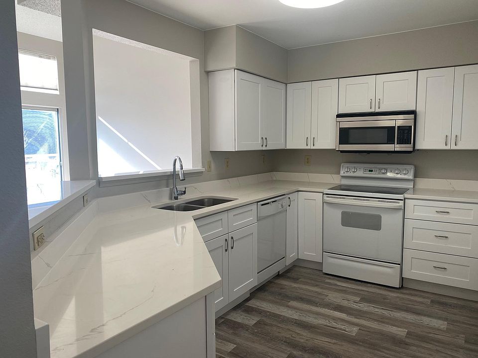 Looks Brand New! Beautiful newly remodeled 3 bed 3 bath, 2 car attached garage townhome in convenient south Denver location. Enjoy new flooring, new kitchen and bathroom cabinets, new paint. Huge living room with volume vaulted ceilings, fireplace, and bedrooms on every level. Walk to parks, trails, RTD. Nice complex with clubhouse. Visitor parking next to front door. Will not last. Water, sewer and trash included