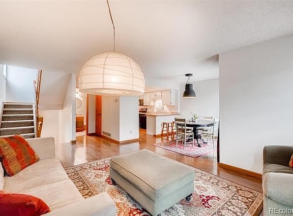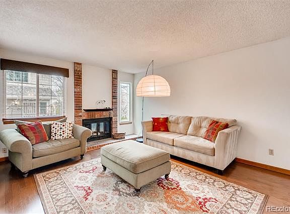 Beautiful end unit townhome in lovely Hunt Club! Gorgeous hardwood floors on main level with wood burning fireplace makes for a cozy space. Spacious bedrooms with natural light throughout the unit. Master bedroom with ensuite bath. New paint gives a nice, clean look. Powder room on main floor for guests. New 3/4 bath added to large basement and it is plumbed for a mini-kitchen to give options for use. Attached two car garage with a work bench and some storage is a nice feature. Community has pool, club house, tennis court and fitness center. Quick possession! Excellent location within unit and also within Denver! This home won\'t last long, come see!