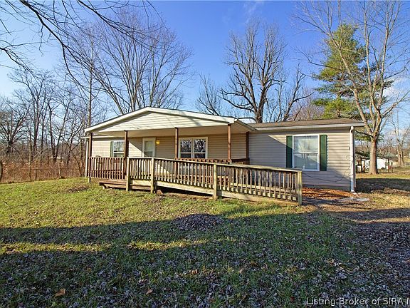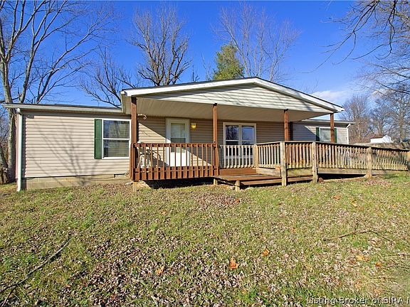 GREAT MANUFACTURED HOME ON A DEAD-END STREET WITH PARKLIKE SITTING! Amazing large covered front porch overlooking mature trees invites you in. As you enter the large living room you will love the vaulted ceilings which opens to the dining/kitchen area with island, built-in desk and pantry. Main bedroom is right off the living room with a full bath featuring a garden tub and separate shower. Step outside from the dining area to another covered deck with a nice backyard and storage shed. With some updates you can really make this into a spectacular home! Amazing location in the heart of Charlestown within minutes to River Ridge, Interstate and the Lewis and Clark bridge. Seller is offering a 1 year America’s Preferred Home Warranty. Buyer(s) agent to verify taxes, exemptions, HOA/restrictions and school system. All measurements are approximate. If important, buyer(s) or buyer(s) agent to verify.
