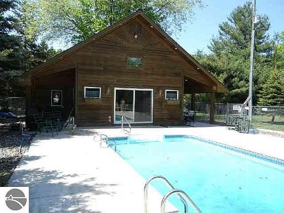 Completely fenced with an automatic gate to protect children and pets, this beautiful full log home was built with entertaining in mind. The open floor plan, two-story fieldstone fireplace and cathedral ceilings offer a spectacular backdrop for entertaining or just relaxing at home on this manicured property. Enjoy a separate 3-car heated garage, another heated pole building used as an office, an in-ground pool and cabana, or to top it all off you can use the Intermediate Lake sandy beach and dock.