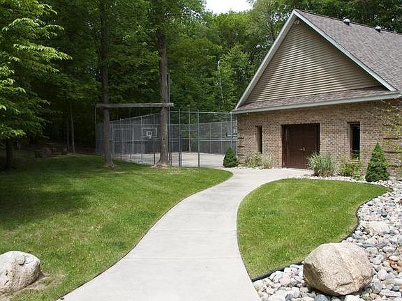 The House is placed 250 feet off the road in the midst of an old oak forest. 70x35 Foot fenced ,lit, concrete sports court with break away basketball hoops at either end . 40x24 heated out garage with attic trusses for 480 sq ft of storage and two 10x10 overhead doors. Large Redwood deck with multiple access points ,partially finished basement with double walk out doors ,40x20 in ground indoor pool with built in hot tub and automatic safety cover. Professional landscaping with in ground sprinkler system, concrete drive ,invisible dog fence and walking distance to town