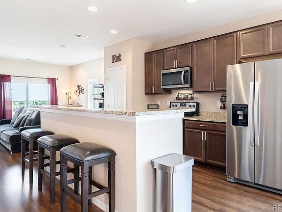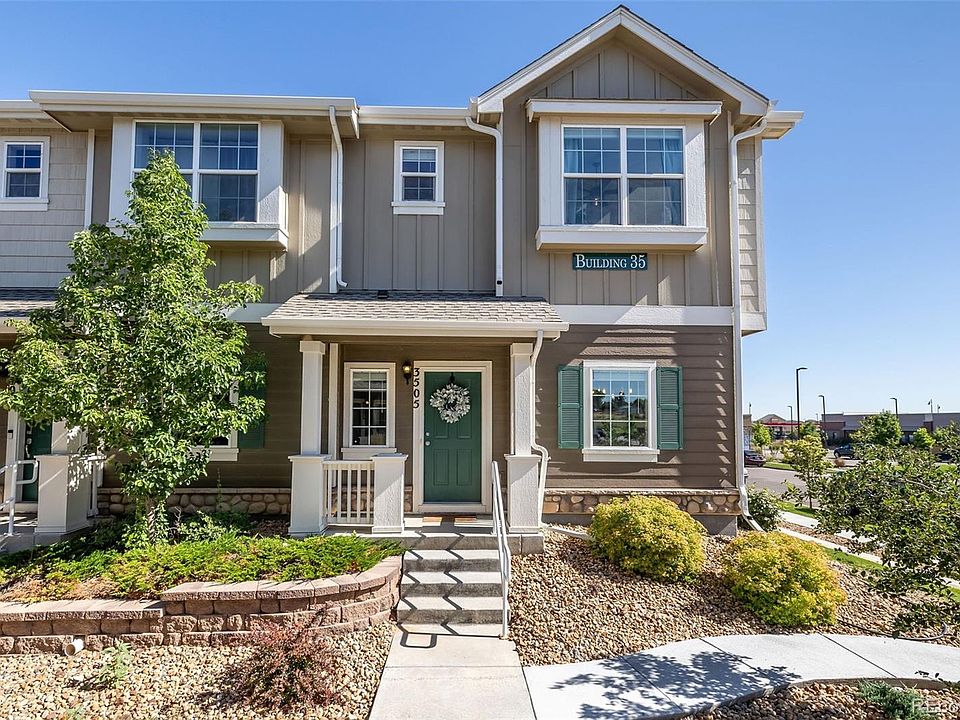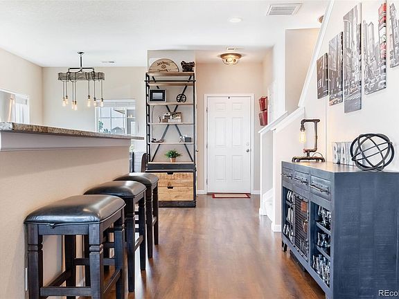 Beautiful pet/smoke free END UNIT in the Aspen Hills community is available for you to call home. This amazing 2-bed, 3-bath unit has updated lighting and fixtures, along with added cabinetry and additional storage. The open floor plan is perfect for entertaining. Kitchen is complete with stainless steel appliances, a large kitchen island, granite countertops, and breakfast nook. Large living room has access to the back patio through sliding glass doors for indoor-outdoor living. The back patio is fenced for privacy. Unit includes two spacious primary bedrooms on second floor, one including a custom barndoor. Both bedrooms offer vaulted ceilings, en suite primary bathrooms, and walk-in closets. A laundry closet and linen closet in the hallway separate the bedrooms. Parking includes a 1-car detached garage along with a second deeded parking spot – rare to have both included! BONUS lighted crawl space under stairs adds over 600sq ft of extra storage! This home is move-in ready and won't last. Original owner has kept this in great condition. 15-minute drive to DIA, access to light rail, and 30 minutes to downtown. 10-minute drive to Prairie Center, including restaurants, Hobby Lobby, Home Depot, Dick's Sporting Goods, Kohl's, Super Target, minutes to Barr Lake, Second Creek Open Space, walking paths, Reunion Lake, Rec Center, and Dick's Sporting Good Park.