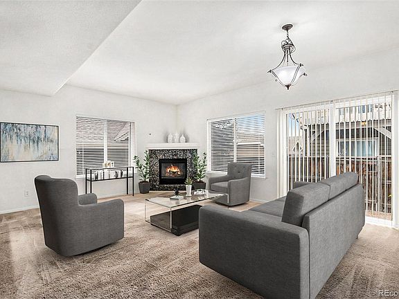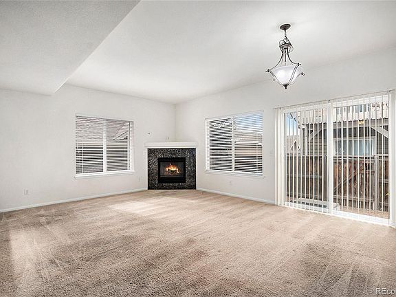 The living room has brand new carpet and Gas Fireplace. You can walk out from there through the sliding glass door to the fenced back yard. The Dining area has a nice brushed nickel chandelier. There are 2 En-Suite bedrooms, each with their own walk- in closet and attached bathrooms. The primary bathroom has a double vanity and shower. The second bedroom has one vanity and a tub/shower.The kitchen is well lighted with overhead track lighting and includes a Double sink, Refrigerator, Dishwasher, Oven/range, and Built-in Microwave. There is a 3rd bath with a laundry closet. You have the extra bonus of a your own 1 car garage plus one reserved parking space.This home is close to stores and dining. It is located, also, near Buffalo Run Golf Club, Schools and DIA. The HOA takes care of the snow removal and trash removal. Just come home and relax in front of the fire after a busy day.