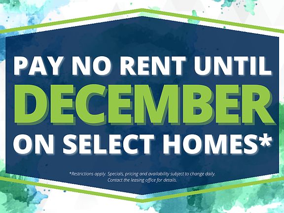 - Special offer! Pay no rent until December 1st on select homes! *Restrictions apply. Specials, pricing and availability subject to change daily. Contact the leasing office for details.