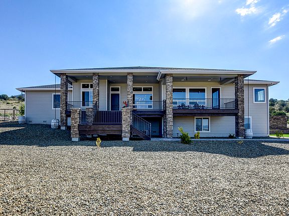 Situated at the base of Mingus Mtn. in the highly sought after community of Legend Hills is this unique & fully custom 3624 sq ft home. Home boast stunning views in both the front & back & is against state land. Inside you will find main level living, with 3BR, 4 full baths & a Den, as well as open living space designed for views and entertaining! Whole home security & sound system. Master BR has a bathroom you will not want to miss-be sure to check out the steam shower & the view from the bathtub! Outside on the lower level is a separate entranced guest suite, equipped with its own bathroom, walk-in closet, kitchenette & entertaining area. Home sits on almost 4 acres, with majority fenced & landscaped including artificial turf, & outdoor spa, gazebo w/ gas fireplace & front automatic gate