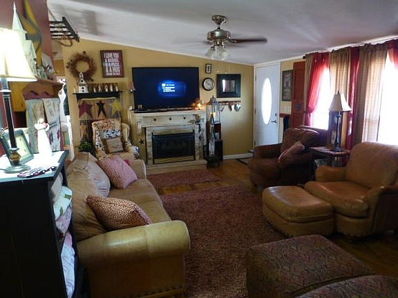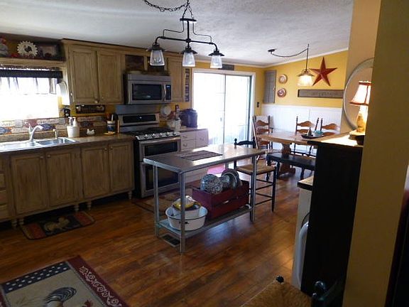 Beautifully and tastefully remodeled double-wide mobile home nestled in the woods just outside of town! Charming, warm and welcoming! Remodeled in 2012, this spacious home offers up to 4 bedrooms and 2 full baths. The split floor plan offers the Master Suite on one of the home with the other bedrooms and bath at the other end. Your family will gather in the eat-in kitchen and spill over to the living room or one of the covered decks (front 16x12, rear 54x10) or maybe out by the above-ground pool (deck measures 22x12)! The attached garage is 29x20 with an attached workshop room! Note the special wrap around the base of the home to keep the cold out, the 4-bay machine shed building with tack room, and all the other extras noted in the photos.
