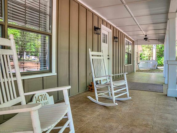 This outstanding home sits among mature trees on a large corner lot and has 2 separate deeded river lots on Fish River! If you have dreamed of living life on the river without the riverfront price tag, this is the home for you. Completely updated residence with two master suites. Large kitchen with granite counters & a walk-in pantry. Opens to a bright breakfast area and sitting area with built in shelving. The custom details to this home are too numerous to count but include attractive batten board interior walls, a huge laundry room with endless cabinets and storage and a built in sink, wood laminate flooring and attractive tile and smooth ceilings throughout. Grand master bath has jetted tub and stand alone shower, double vanities as well. Outdoors you will find a large back deck overlooking a beautiful backyard with a perfect mix of sun and shade and is privacy fenced. The front porch area is tiled and there is a circular drive and side entry garage drive with plenty of space for everyone! River lots just around the corner with boat launch and pier in place. This home is stunning and has it all!