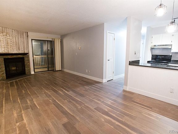 This newly remodeled two bedroom, one bathroom condo is ready to welcome any first time buyer or investor. The unit has brand new laminated flooring that has been elegantly finished with trendy tall baseboards. The updated kitchen includes a brand new granite counter top, sink, fixtures, stove, range hood, and refrigerator.  The completely updated bathroom will impress you with its stylish vanity, higher end toilet, nice tub, tiled shower, and shower fixtures. Two private bedrooms overlook the beautiful trees outside the condo.  A large, private covered porch is inviting and ready for you to enjoy the beautiful sunset everyday. The rustic fireplace gives you a taste of Colorado living. Its spacious living room is a great for friends to gather and relax. Did I mention that ugly popcorn ceiling has been removed too? Washer dryer hooks are in the unit. Why pay rent when you can own? This one is minutes to the light rail or highway and has everything you need.