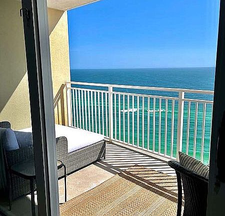 Gorgeous Gulf front condominium on 23rd Floor of Wyndham Emerald Beach Resort. Rental income for 2021 was over $52,000. 1 bedroom, bunk area, and 2 full bathrooms. Galley kitchen with granite countertops. This is true resort living with beach side pool, two additional pools, tiki bar, skybar, gift shop, and Starbucks on sight! 1.3 miles east of Pier Park. Close to dining and shopping. Elementary: Hutchinson Beach Middle: Surfside High: Arnold