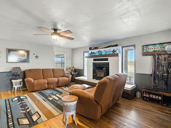 Welcome to your next home, a 3 bedroom 1 bathroom ranchette that blends cozy country living with functional horse and livestock facilities. The charming home features rustic finishes, hardwood floors, and a spacious kitchen with island seating and modern updates. Multiple living spaces provide room to relax, work, or gather with family.
