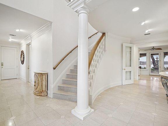 Stunning French Colonial style waterfront estate/compound. Fully gated private property sitting on a 6.1 acre hilltop with arguably the best lake view in all of lake south, panoramic views spanning from Jonestown to the main basin. 2 gated access for 6.1 acre hilltop parcel with direct access to additional 2.36 acre waterfront lot (lot not included in purchase price, but may be sold alongside subject property) running north towards water's edge and 2 story newly built boat dock with boat slip/lift, 2 jetski slips, enclosed lounge area, lower level lounge area, and upper level tanning deck.