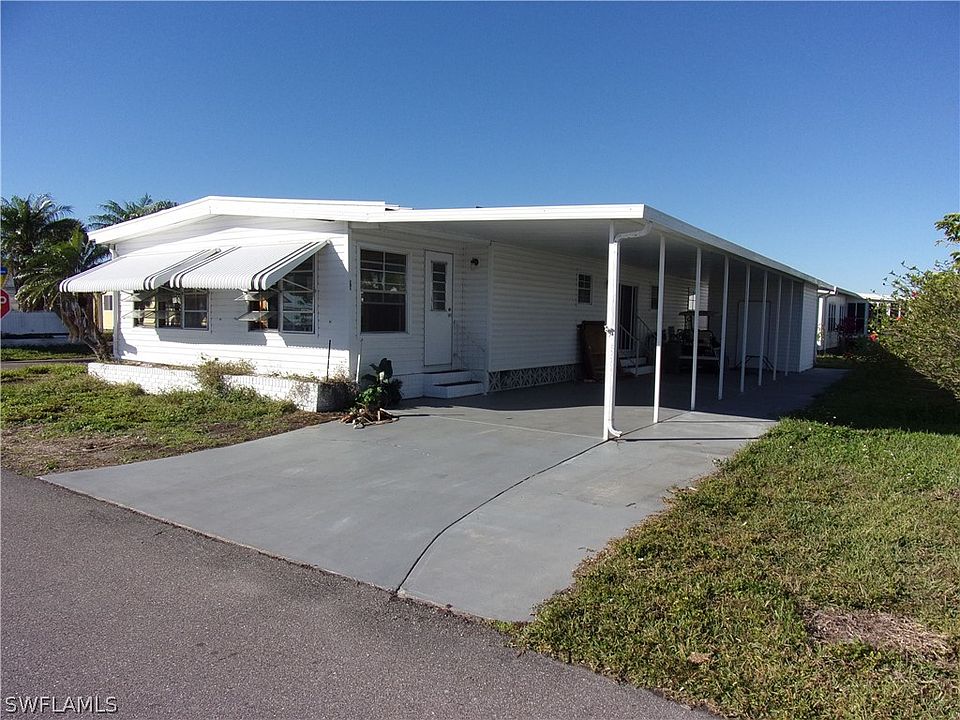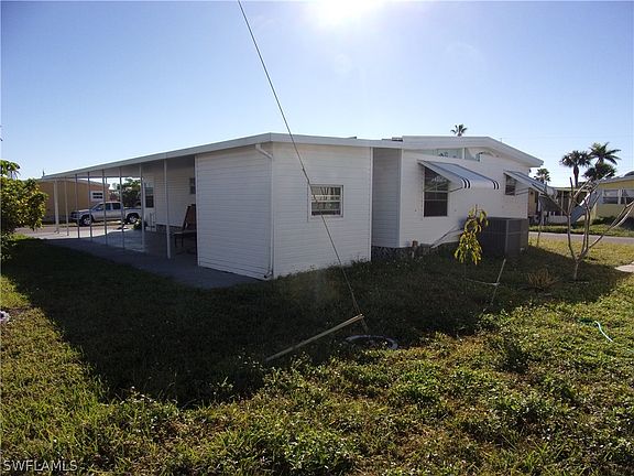 This property is located on a CORNER LOT it is a open palette looking for a artist! All Walls, Insulation, Sub-Floors, Moisture Barrier have all been removed from this LARGE 1372 square foot home. Exterior damage was minimal. HURRICAN SHUTTERS LARGE CARPORT are Desirable Features. Situated in a 55+ GULF ACCESS COMUNITY OLD BRIDGE VILLAGE CO-OP IN NORTH FORT MYERS with its 81 slip Marina, and BOAT & KAYAK launch, is a resident owned community with a 24-7 GUARDED GATE for your SAFETY. The Co-op with its five acre park with grilling stations right on the Caloosahatchee River, has everything you need to enjoy what Florida has to offer. Packed with ACTIVITES and AMENITIES: From the SOCAL ALLIANCE with pot-luck dinners, movie nights, dances, Thanksgiving and Christmas parties at the Clubhouse, - To the YACHT CLUB with Commodore's ball, Shipwreck party, Boat-to-Lunch - To the Baseball Team, Tennis, Pickle Ball and Shuffleboard AND SO MANY MORE THINGS TO DO all filling your days with fun and laughter! Located on the Caloosahatchee river directly across from downtown Fort Myers with Dining, Shopping, Monthly Music-Walk, and only minutes from the famous Thomas Edison Estate/Museum and Fort Myers/ Sanibel Beaches.