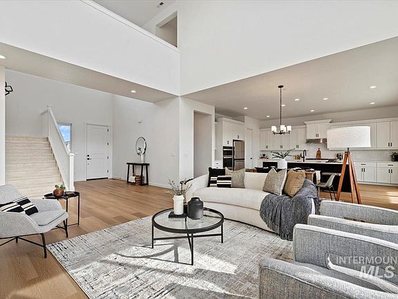 Better-than-new home with ALL the upgrades! From the moment you step in, you'll be wowed by the bright, open living space with huge windows that bathe the home in natural light. Stunning views of the Owyhee mountain range from the upper windows. Kitchen dreams come true with expansive quartz countertops, built-in gas range, stainless steel appliances (including refrigerator), and a spacious pantry. Perfect for entertaining or enjoying those home-cooked meals! The main level master suite is a peaceful retreat with an impressive bathroom featuring dual vanities, separate soaker tub and shower, along with a huge walk-in closet. Additionally, the home features 3 more large bedrooms upstairs, 3.5 total bathrooms, an office area and a bonus loft providing plenty of space for everyone. Upgraded carpet and blinds throughout make this home move-in ready. Step outside to a fully fenced and landscaped yard with brand new garden boxes and trees ready for your green thumb. The neighborhood offers walking paths, a community pool, pickleball court, and a playground. Let's not forget the 3rd bay garage with its own entrance—ideal for a workshop. This home is truly turn-key ready for you!