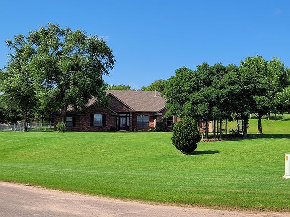 Beautiful home on a 1 acre lot in a quiet Subdivision! Three bedrooms, two bathrooms, gas fireplace in living room plus a study! 3 car garage with storm shelter in it. Excellent access to Tinker,Boeing, and the rest of Oklahoma City! Study is perfect for work-from-home! House is on a cul-de-sac, and is in Carl Albert school district. House has fiber internet already hooked up. Master suite with double vanity, jetted tub,extra large walk-in closet. Laundry room with utility sink and built-in ironing board. Large kitchen with island, huge pantry, and open concept with living room. Tons of linen closets and storage. Ceramic tile through-out house. Covered patio with a small fenced area off of it. Two small storage buildings.