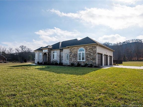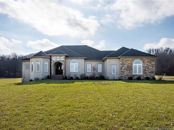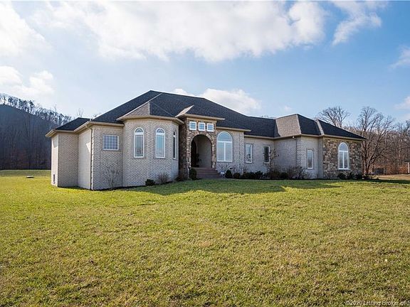 Country elegance at its BEST! You MUST see this 3 bedroom (possibly 5), 3.5 bath, custom-built home! On over 8 acres, this home is located 15 minutes from shopping/restaurants, and 20 minutes from Louisville. The massive front yard greets you as you pull up to the 3-car garage. Soaring ceilings with elegant arches and columns welcome you as you enter. Engineered acacia hardwood floors carry you into the great room with coffered ceiling, cozy gas fireplace flanked by built-in bookcases, and large windows overlooking the partially wooded backyard. The open concept kitchen provides custom cabinetry, an ample amount of granite countertops, and stainless-steel appliances ??? including wine fridge! Tucked behind the kitchen are two spacious secondary bedrooms and a full bath. On the opposite side of the home, the master retreat features two walk-in closets with custom cabinetry, custom built-ins, elegant tray ceiling, and large windows. Enjoy the large tile shower with rainfall shower head or soak in the extra-deep jetted tub. You shouldn???t run out of hot water with TWO 50-gallon water heaters! In the basement, you???ll find the possibility of two bedrooms (windows do not meet egress), an office, and a full bath. Entertain in the family room with spacious wet bar. In the backyard, enjoy the covered patio and let your family pet roam the fenced area. Enjoy low energy costs with a geothermal HVAC system!