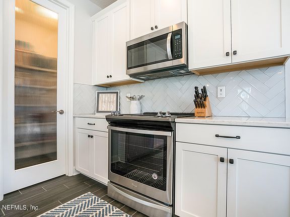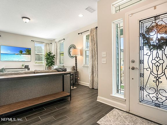 Fabulous & thoughtfully designed 3 Bed/2.5 Bath w/1st flr. office, upstairs bonus living, fenced corner lot all makes a perfect layout. Boasts a gorgeous kitchen, sure to please the inner chef w/oversized quartz breakfast bar overlooking open living room pouring in natural light. Sliding doors leading to a covered paver lanai offering an extended outdoor space w/ gas fire pit to appreciate & relax. Unwind in your expansive private Owner's Suite w/ elegant bath offering dbl vanities, sizable shower, soaking tub & walk-in closet. 2 bedrooms conveniently split off the llg. bonus living to enjoy. Work from home in your 1st floor office w/French door. Bartram Park Preserve offers amazing amenities w/ a pool, splash park, clubhouse, fitness center. 9B/I-95 w/in minutes of Durbin Pavilion. All furniture in home is also available for sale outside of the purchase price