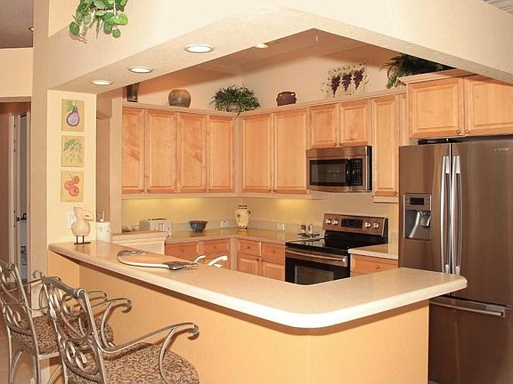 This custom Del Ray home is located in a gated community of only 97 homes west of 41. Located within minutes of three beaches, it's a rare find. This spectacular pool & spa home has an extended lanai that overlooks a gorgeous western long lake view. BBQ and enjoy your favorite beverage watching the sunset every night of the week! Upgrades include tile, tray ceilings, summer kitchen, electric storm shutters, custom pool & spa, extended lanai, built-ins (Murphy bed in den), etc. King Bed in Master Suite, Twin Beds in BR 2 and Double Murphy Bed in Den. TV's in Master, Living Room and Bedroom 2. $200 Electric Cap and $100 Water Cap. Amenities include a clubhouse, community pool, spa and small workout area. Looking for value and an amazing location? Look no further! You found your vacation home in paradise.