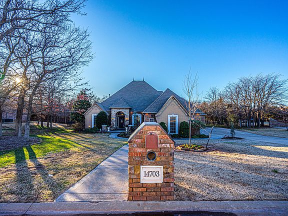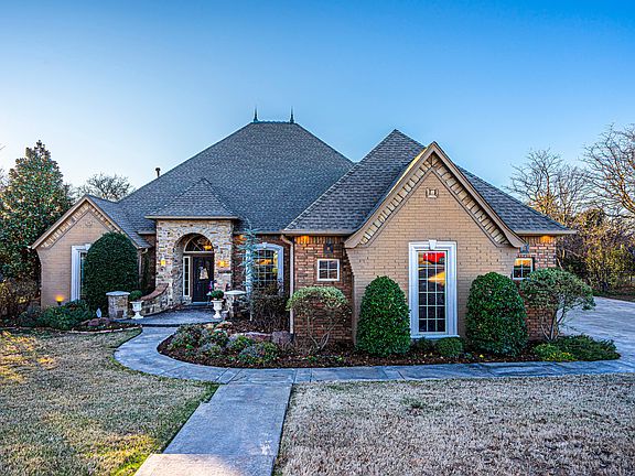 Beautiful home in East Edmond on wooded 1/2 acre lot with SWIMMING POOL!! This 6 bedroom 4.1 bath home features four bedrooms and study on the mail level. Upstairs features two bedrooms a full bath, a game room and private balcony. Majestic staircase, designer finishes with fresh interior paint, stone fireplace and hand scraped wood floors. Spacious great room that opens to the gourmet kitchen that features a wine cellar, gas range, double ovens, pot filler, island, walk in pantry and freshly painted custom cabinets. The master suite and spa bathroom is on one side of the house with three bedrooms on the other side of the house. AMAZING OUTDOOR LIVING! concrete pool with jumping rock, fire pit, outdoor kitchen and large covered patio! Home features a water well for sprinklers and pool! HOA features pool, fitness center, playground and a soccer field. Feels like you are on vacation all year long! OPEN HOUSE SUNDAY 1/26 2:00-4:00! HURRY
