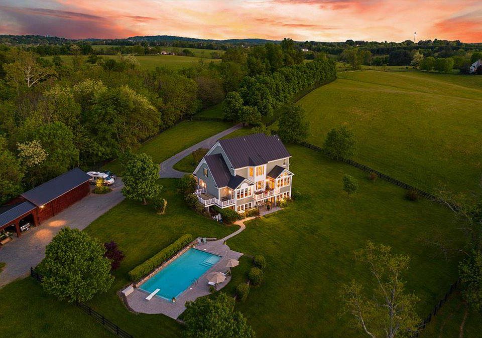 Welcome to your very own slice of heaven in historic Waterford, where luxury meets country living! This stunning dream property spans over 55 acres of picturesque rolling hills, woods, and fields, complete with a meandering stream that adds to the natural beauty of the surroundings. Perfect for horse enthusiasts, the property boasts 4 large paddocks, pasture, hay field, and 4 board wood fencing. This magnificent listing offers the best of both worlds- the privacy and tranquility of serene rural surroundings, while still being just minutes away from the charming towns of Leesburg and Lucketts, as well as local vineyards and breweries. The beautiful home is a masterpiece of design and architecture, with a stately exterior that boasts multiple decks, a patio, and a stone front porch that will take your breath away. Step inside to find a beautifully designed interior with hardwood floors throughout the main level and tile floors in the charming farmhouse-inspired kitchen. The chef's kitchen is equipped with ample cabinetry, a center island, and a farm sink, and features a breakfast area in a beautiful morning room that is the perfect spot to enjoy a cup of coffee. The main level also includes a 2-story family room with a stone fireplace, a dining room to host dinners, a library with built-in bookshelves, and a primary bedroom with a bathroom that features exterior access to a deck with a hot tub. With windows galore, natural light and stunning views of the property are never in short supply. The fully finished walk-out lower level includes another bedroom with a full bathroom, an additional full bathroom for convenient changing when your enjoying the 20x40 pool, a workout room, and a large recreational room with a wet bar and ample storage space. Perfect for horse owners, the 4-stall horse barn includes a tack room, wash stall, and hay loft, making caring for your horses a breeze. The 50x25 combined garage and workshop is timber-framed and features 4 large bays, with an additional 25x25 covered 2 bay area for equipment and toys. Don't miss out on the opportunity to make this stunning property your own!