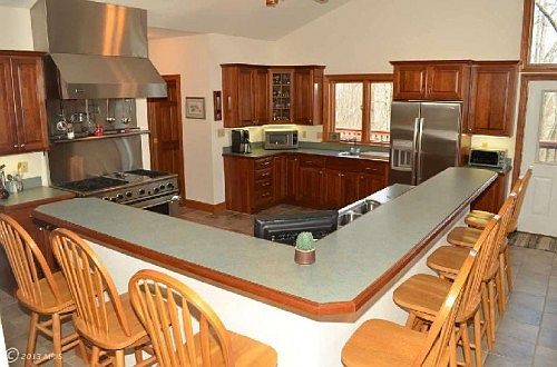 Complete info: http://14703quakerbottom.agentmarketing.com - Superior Construction found in this one owner custom built Butler Stone Contemporary. Open Expansive floor plan with vaulted ceilings & lots of windows. 6 BR & 4.5 BA, 5000 sq ft of Living Space. Gourmet Kitchen w/top of the line appliances. Master Bedroom w/Super Bath & Private Balcony. 3 Zone Heat. Finished LL. 2 Car Att Garage. Wrap around Deck w/Hot Tub overlooks 2.5 ac lot w/Stream.