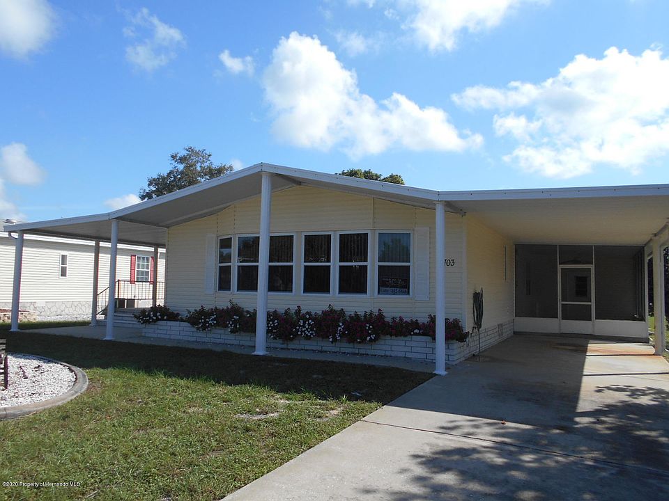 Beautiful GOLF COURSE CORNER LOT HOME !!! OPEN FLOOR PLAN LIGHT AND BRIGHT, YEAR ROUND GLASS FLORIDA ROOM , WONDERFUL CIRCULAR KITCHEN WITH STAINLESS STEEL APPLIANCES, CATHERDRAWL CEILINGS, GOLF CART GARAGE, SCREEN PORCH AND A FRONT PORCH TO SIT AND ENJOY THE FLORIDA LIVING , IN A CONNUMITY THAT YOU OWN YOUR OWN LAND