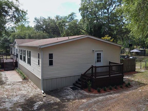 Back on the Market!! Lovely mobile home nestled on 1.17 acres, isolated enough to give you the feeling of country living, while having the convenience of being close to beaches, shopping and restaurants. Move-in ready, open floor plan, vaulted ceilings, stainless steel appliances with a huge kitchen. The backyard is fully fenced with an above ground pool.The detached 28x32 garage/shop is perfect for the car enthusiast or to store all of your tools and toys. Heat pump replaced 2015. If you're looking for privacy, peace and tranquility this is the place for you. Call now!