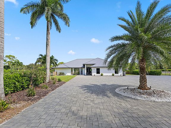 Welcome to your equestrian paradise in the prestigious community of Caloosa. This stunning property spans over 5 acres of serene landscape, which surround your 4 bed, 3 bath, completely renovated home. A brand new pool deck, summer kitchen, and outdoor fitness area highlight some of the many recent upgrades, and provide for an endless entertainment landscape.Outside, equestrians will delight in the brand-new barn, which can accommodate up to 10 horse stalls if desired. Currently, the property has 2 stalls already in place. The lush landscaping and majestic palm trees provide a picturesque setting for unmatched privacy.A newly installed roof and a grand, sweeping driveway add both practicality and charm to this exclusive retreat