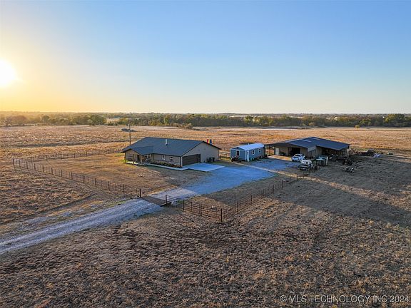 Introducing a +/- 80 acre property in Nowata County, Oklahoma! This property offers a perfect blend of rustic charm and modern convenience. Located just +/- 1 mile North of US Highway 60 and +/- 1 Mile east of US Highway 169, this property features a newly built 2,692 Sq Ft home with 3 bedrooms, and 2 bathrooms. The open concept, ranch style design showcases beautiful granite countertops and a spacious center island in the kitchen, complete with bar-top seating. Floating wood tile floors span the entire home, complemented by a cozy wood-burning fireplace in the main living area. There is a walk-in storm shelter in the master bedroom that doubles as a spacious closet. The home is equipped with a gas water heater, septic system, electric air conditioning, gas heat, dishwasher, and a built-in oven/ range. An attached two-car garage with an electric door further adds to the home’s convenience. In addition to the home, the property boasts an immaculate insulated 40x60 shop with two overhead doors, car lift, and a 24 ft carport. There is a separate room just off the main shop floor ideal for storage or an office, making this a prime candidate for an at-home business or all of your equipment servicing needs. A 20 ft lean-to on the east side of the building provides additional parking for vehicles and equipment. The land offers breathtaking 360-degree views and is perfectly set up for grazing cattle, featuring a history of warm and cool-season grasses, particularly abundant in fescue. Two ponds provide much needed water. There is also a nice stand of mature timber along the creek which provides shade and attracts local wildlife including white tailed deer. The property is fully fenced and cross-fenced, with a cattle guard in place at the main entrance along EW 21 RD, and includes cattle pens and a squeeze chute for livestock management.