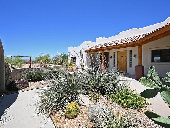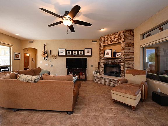 Very special, quaint & charming home w/ private pool & Tiki Bar on 1.25 acres in the Rio Verde Foothills. Home has a split floor plan, open kitchen, great room concept with a cozy stone fireplace & lots of natural light. Master is very spacious w/ access to the back patio & has a very large walk-thru closet. 2nd bedroom also has double closets & access to the patio. Custom cabinetry, ceramic wood tile in all bedrooms, newer water softener, newer paint, oversized 3-car garage. Paved driveway, private gate & plenty of space to park additional vehicles on the concrete slab (30 AMP RV hook-up). The back patio is fully screened in, protecting against the rising sun. Fenced in Backyard for ultimate privacy. Beautiful mountain views, lovely front courtyard, custom accents throughout the home!
