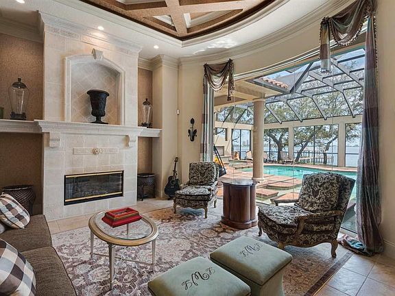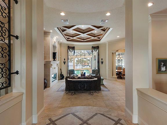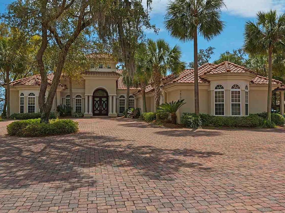 Gorgeous Arthur Rutenberg mediterranean style home featuring extraordinary architectural details and masterful craftsmanship on a large 1.5 acre waterfront lot. Beautiful front doors open to the foyer adjacent to the elegantly appointed dining room with built in buffet and magnificent lighted coffered 13 foot ceilings. High accented ceilings, crown molding, and built ins throughout the living areas and master suite. Living area features a dramatic bowed window overlooking the screened lanai with views of the intercoastal. The kitchen was designed for entertaining with a curved wet bar, center island and wine storage accented by custom wrought iron doors. The family area connects to the outdoor entertaining area through the retractable sliding glass doors. The lanai offers a heated multi level gunite pool and a cascading waterfall hot tub combination, outdoor fireplace and fully equipped outdoor kitchen and bar area. Walk on down to the pavered area and enjoy a nice dinner on the patio over looking the water. Master suite features a grand foyer separating the bath, enormous walk in closet and mirrored dressing area from the bedroom with a wet bar with refrigerator and a sitting area with access to the lanai and pool. Luxurious master bathroom with dual vanities, center linen island, walk-in shower with body jets and Jacuzzi tub. The home movie theater boasts tiered seating, 6 reclining leather chairs (included), and magnificent surround sound. The fourth bedroom has a living room that could be used for a game room. Custom built in office furniture with more ironwork. Two additional bedrooms with elegantly appointed baths plus a half bath and a gorgeous full pool bath. Whole house vacuum, sprinkler system & whole house generator. You will love being able to pull up to your covered boat slip with lift after a long day of fishing. The pavered ramp was designed so you can ride the polaris down to the dock to load/unload your equipment & fish.