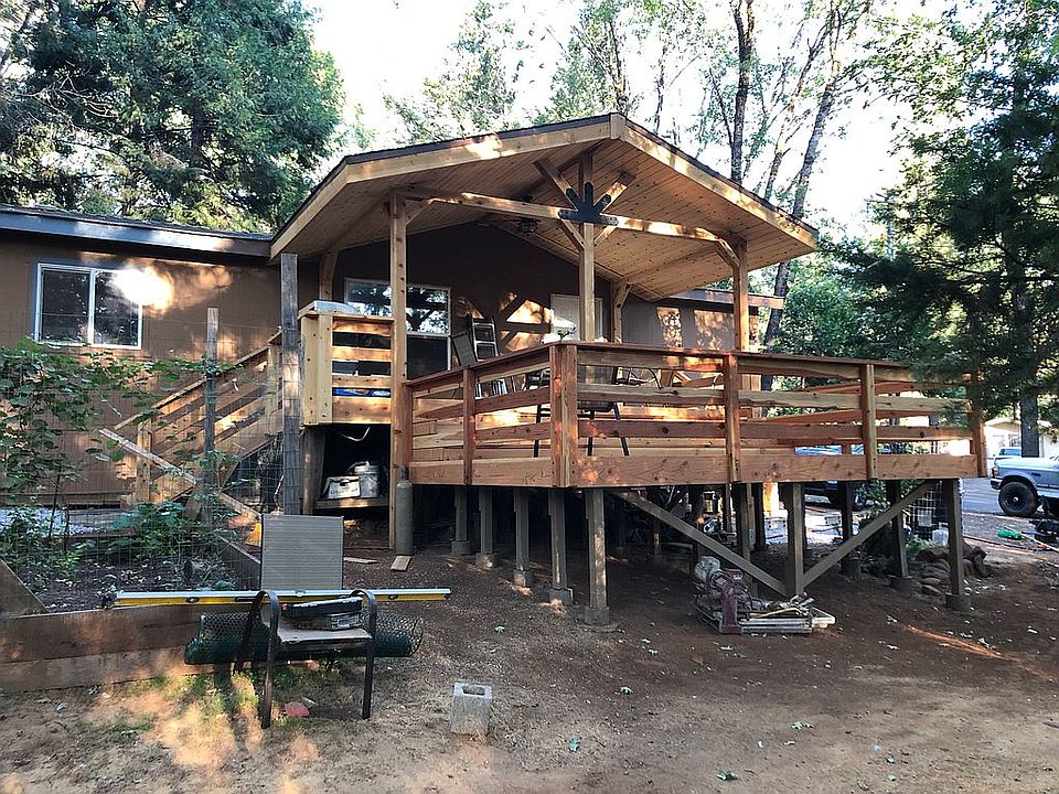 New custom covered cedar & redwood craftsman style timber frame deck(s)