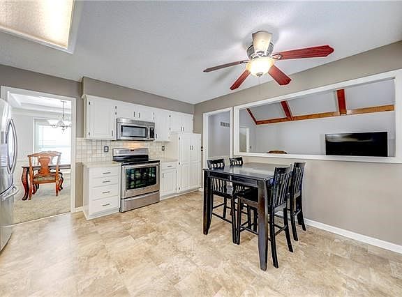 Spacious 4 bedroom on .32 acre, fenced cul-de-sac lot! Open floor plan with 1,886 square feet features: kitchen open to large vaulted great room with fireplace, two first floor living areas, formal dining room, large master suite with double sinks, walk-in closets in two secondary bedrooms, oversize laundry room with sink, oversize garage and huge unfinished storage area in basement! Updates and recent improvements include: white enamel trim, water heater and composition roof! Located in great subdivision with easy access to Shawnee Mission Parkway, shopping and major highways. 2022-02-15