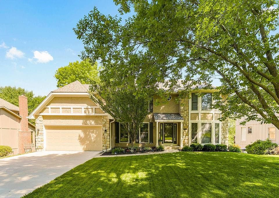 Well maintained 4 bedroom 3 1/2 bath 2 story home in Lenexa! The kitchen is equipped with granite countertops, which not only add elegance but also provide durability. There is an additional wet bar located between the kitchen and the great room, allowing for convenient serving and entertaining. The great room boasts floor-to-ceiling windows, allowing ample natural light to fill the space and offering views of the adjoining greenspace. It is further enhanced with built-ins and a cozy fireplace, creating a warm and inviting atmosphere. In addition, this home also offers a large master bedroom with an adjoining sitting room. This setup provides a private retreat within the master suite, ideal for relaxation, reading, or as a personal office space. The master bathroom is spacious and luxurious, featuring granite countertops, double vanity, whirlpool tub, separate shower and a huge walk-in closet. The home has a walk-out basement, providing easy access to the yard and adjoining greenspace. Within the basement, there are two recreational rooms and an additional wet bar, offering living and entertainment space for various activities and gatherings. The home includes a large storage area that has the potential to be converted into a fifth bedroom if desired. This flexible space allows for customization and expansion according to your needs. The home features a deck that overlooks a wooded yard and adjoining greenspace, providing a scenic view and privacy. The deck is perfect for outdoor entertaining or simply enjoying the natural surroundings. With its proximity to Lenexa City Center, Shawnee Mission Park, shopping options, and accessible highways, the location of this home offers the best of both convenience and amenities along with a neighborhood pool, making it an attractive choice for those seeking a well-connected and vibrant community!