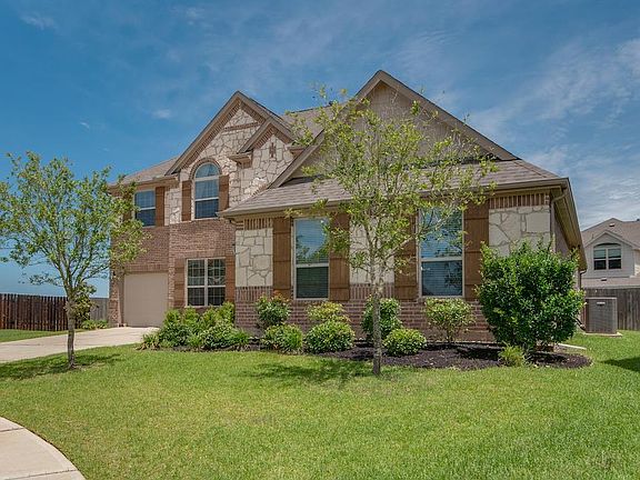 Elegant Lennar Home, towering entrance, formal dining, study w/French doors, hardwood floor. 5 bedrooms, master & bedroom #1 downstairs, 3.5 bath. Kitchen: granite counters, stainless steel appliances, opens to breakfast, living area soaring wall featuring gas log fireplace. Game room, 3 bedrooms, huge media room up. Two garages. Large covered patio. Sprinklers. Cul-de-sac. Coveted Fairfield--a community w/ 8 lakes, 6 big parks/pools, schools on-site, trails, greenbelts, priceless family focus.