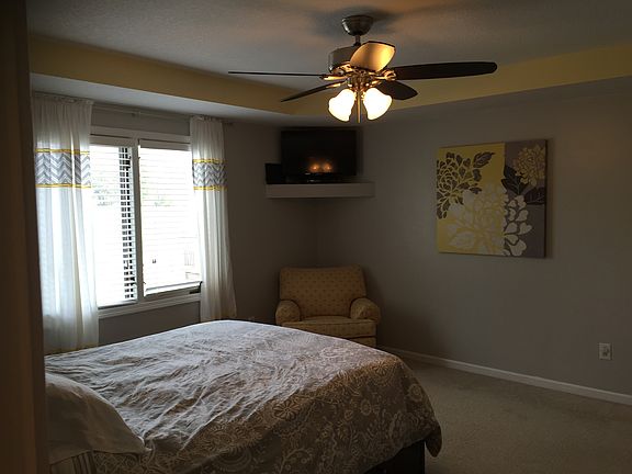 Gorgeous 4 bedroom home with master on the main floor with possible 5th bedroom in basement. On quiet cul-de-sac street. 3 car garage with drain, wall storage and radiant heat. Vaulted great room with gas log fireplace and brick surround. Large kitchen with lots of counter space updated cabinets and island. All kitchen appliances are 1 year old and will stay with house. Breakfast nook opens to a 26x15 deck. New fenced in private back yard with amazing view of pond from kitchen. Spacious daylight basement has wet bar, family room, Rec room, full bath and bonus room.