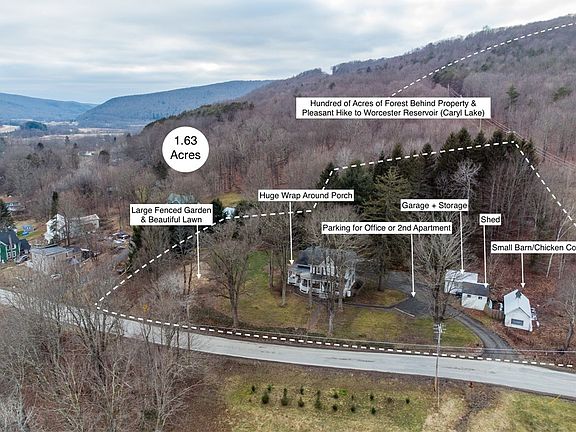 This classic Victorian farmhouse is a rare gem that offers the best of both worlds: convenience and privacy. This property is close to Oneonta, Cobleskill, and Cooperstown, making it ideal for work and shopping. Located on the edge of town, the house is situated on a knoll overlooking the hills and valley. Enjoy beautiful sunrises and coffee on the stunning wrap-around porch, surrounded by flowers and lawn. Exercise your green thumb in the flower gardens and fenced in vegetable garden. The home has been well-loved and renovated to its former glory. It is loaded with original character, such as the heart pine wood floor in the living room, different crowns over the windows, and a huge hearth with a Jotul woodstove. The home has many closets and built-ins. It features a home office with parking and access for clients. The house is currently configured to be used as a single family home OR as two customizable apartments each with it's own kitchens, living rooms, and bathroom(s). Taxes are low and heat is affordable. The home is in excellent condition. High speed internet. Don't miss this opportunity to own a piece of history!