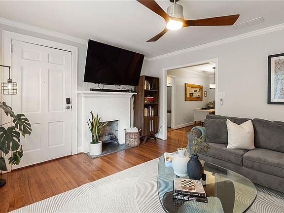 This beautifully remodeled 2-bedroom, 2-bath home combines timeless charm with modern updates. Spacious walk out, flat yard. The renovated kitchen showcases white cabinetry and new stainless-steel appliances, that flows into the dining area and inviting family room with a working gas fireplace. The primary bath offers a large double vanity, walk-in tile shower, and large walk-in closet. A flexible rear foyer with its own door makes the perfect room for a home office. Outdoor living shines with a stunning flagstone patio that extends into the beautifully landscaped and flat backyard, which is partially fenced and can easily be fenced in for pets. The property also features an oversized 2 car detached garage—ideal for parking multiple vehicles, creating a home gym, workshop, or even finishing into additional living space. Just a 5-minute walk from the newly constructed segment of the Beltline, this home also offers quick access to Buckhead, Midtown, and is convenient to major interstates. To go along with the many upgrades, the current owners also replaced the HVAC in 2023 along with the refrigerator and microwave, and the roof was replaced in 2018.