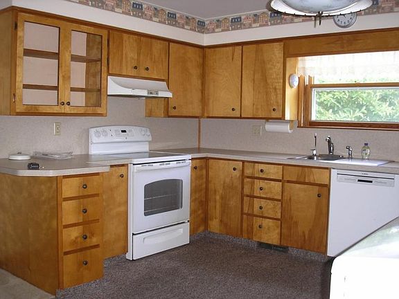 Very cute three bedroom ranch style home. Offers full bath and shower in the basement. Nice country kitchen with lots of cupboards, and includes newer appliances. The three bedrooms all have oak floors, plus a nice living room with coved ceilings. Home also features a full basement semi finished, plus nice carport and 26' x 24' attached garage. Great location and immediate possession. This one won't last.