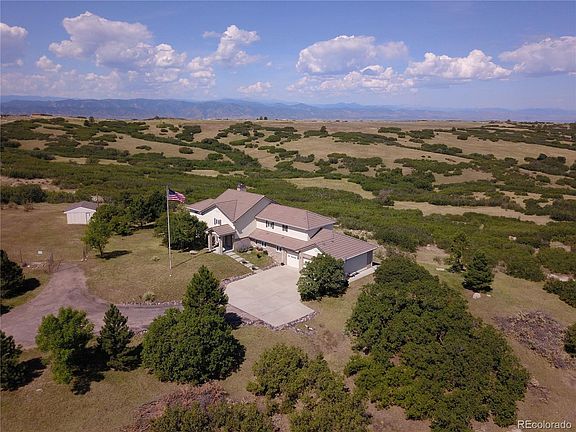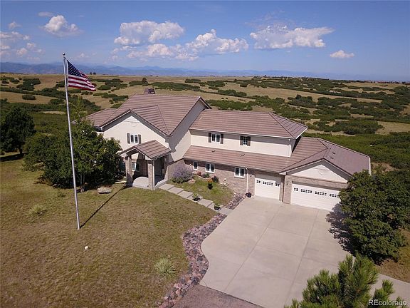 Incredible Property 4.4 Acres! Backs to 11,000 Acres of Open Space, Including a Shared Fence with Daniels Park 1,000 Acres, Buffalo Ranch & Denver Mountain Park! High on the Ridge with Mountain & City Views! Extremely Rare Property to Come Available! Original Owners! Pristine Condition with Gated Entrance & Paved Drive! Beautiful Rock Outcroppings! Custom Built, Architect Designed 2-Story Home with Gorgeous Hardwood Floors Throughout! Great Room with Soaring Ceiling, Brick Accented Fireplace with Stone Mantle, Custom Beams with Ceiling Fan, Custom Brick Accents, Built In Shelves & Wall of Windows with Patio Access to Enjoy the Views! Views From Every Window! Formal Dining Room with Custom French Door Walks Right Out to The Patio! Gourmet Kitchen with Stainless Steel Appliances, Granite Counters & Large Breakfast Nook/Sunroom! Main Level Secondary Bedroom & Main Level Study with Closet - Or Could Be 5th Bedroom! Spacious Upper Level Master Suite with Private Deck, Bay Window, Luxurious 5 Pc Bath with Jetted Tub & Walk In Closet! 2 Additional Bedrooms Upstairs! Main Level Laundry Includes Washer & Dryer! Upgraded Light Fixtures, & Hardware Throughout! Freshly Painted Shutters & Exterior Doors, New Garage Doors! 3 Car Garage, Heated with Coated Floor & Workshop! Cute 2 Stall Barn For Art Studio or a Workshop!