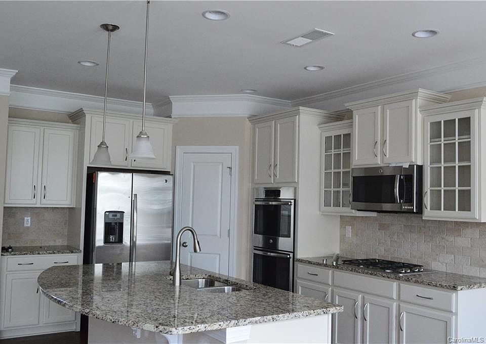 Gorgeous plan with downstairs bedroom and bath & large bonus room! Modern white cabinets in gourmet kitchen with granite, staggered cabinets, stainless double ovens, gas cooktop & huge eat up island. Wide plank hardwoods in entry, dining, kitchen, breakfast AND family room. Beautiful two story entry with iron pickets on stairs. Granite & tile in all bathrooms. Drop zone coming from finished garage for backpacks & coats, and on a culdesac! This home really does have it all! September delivery!