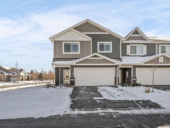 Like-new, end-unit townhome in Watertown! Through the foyer you will enter up to the main level which offers a bright and spacious open floor plan, featuring vaulted ceilings throughout the living room, kitchen, and dining area. The kitchen boasts wood cabinetry, an island, stainless steel appliances, and granite countertops. A sliding-glass patio door leads to a balcony deck with gorgeous views— ideal for relaxing or entertaining outdoors. All three bedrooms are located on the upper level, along with two full bathrooms. The primary bedroom includes an ensuite with a double-sink vanity and shower. The basement, complete with a laundry area, offers plenty of storage and potential to create additional living space and plumbing already ready to go for a half bath! Enjoy low-maintenance living with snow removal and lawn care taken care of for you!