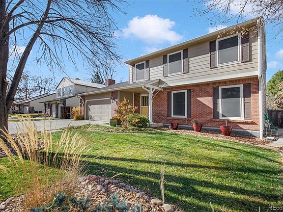 Beautifully maintained home in Brookvale! Welcome to this updated home with wonderful curb appeal! The mainfloor boasts formal living and dining rooms, family room with gas fireplace, eat-in kitchen and updated bathroom. Beautiful wood floors, new carpet and paint throughout. Three bedrooms on the upper floor with two updated bathrooms! Walk out the patio door to a beautiful covered patio for outdoor enjoyment! The backyard is landscaped with trees, shrubs, raised garden beds that you will be surprised by beautiful flowers popping up in the spring/summer and a shed for extra storage. This 2 car garage home has a large extended concrete driveway for extra vehicles or recreational parking! No HOA! Located with extraordinary convenience to schools, parks, shopping, Buckley AFB, Denver International Airport, Anschutz Medical Campus and easy access to highways.