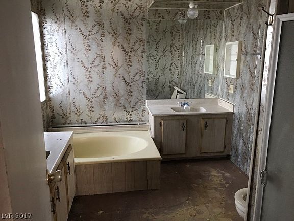 3 bed, 2 bath Pahrump, NV home for sale. Property is an older manufactured home with a detached garage that sits on 1.78 acres, located in a quiet, rural neighborhood. Exterior of property requires some repair. Interior of property needs extensive repairs such as flooring, drywall, painting.