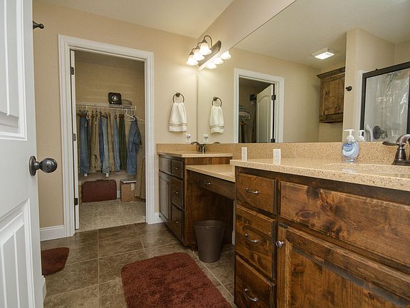 Better than NEW! This custom built home is located in very desirable Vintage Hills Subdivision. Not just your ordinary 3 BR, 2 BTH home! Meticulously cared for with SO many extras! The open floor plan is warm and inviting. Premium engineered hardwoods. Gas fireplace! Large dining area. Fabulous Kitchen, featuring plenty of beautiful cabinetry all topped with highly rated QUARTZ Counters. Desk area! Gas cooking! Stainless Steel appliances including like new REFRIGERATOR, STAYS! Charming covered back deck overlooks large privacy fenced yard. Irrigation system! 3 car garage! Nice sized bedrooms with premium carpets. Split BR plan! Handicapped features w/ larger doorways, raised toilets & grab bars! Almost new Washer & Dryer stay! Tornado shelter. Make your appt today to see!Not enough space for these extras: 50 gallon Hot water tank!Quartz window sills and counters in bathrooms! His and her sinks in huge master bath! Hidey hole in Master closet Centered floored electrical outlet in living area! All window treatments! 30R insulation! Walls 13R. High efficiency HVAC System! HOA includes pool, clubhouse and trash service.