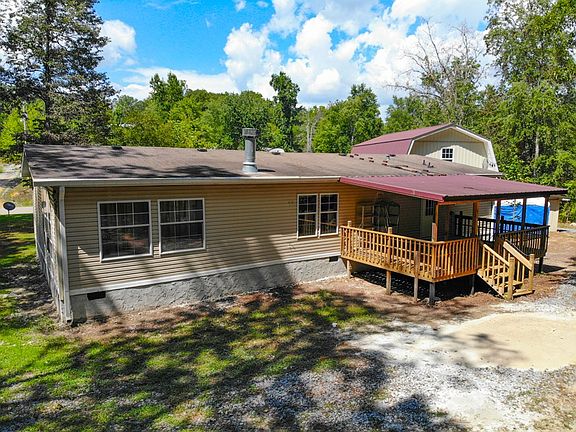 COUNTRY LIVING ON OVER AN ACRE! The wooden covered front porch leads you into this home where you will find the living room, the kitchen with lots of cabinets and a dining area, the laundry room, the family room with a wood burning fireplace, the master bedroom with a walk in closet and a full bathroom, two more spacious bedrooms and another full bathroom. Outside you have a large wooden covered back deck, a storage building, and new gutters and gutter guards. The detached garage has two car doors and a full upstairs you can use for storage. All of this is on a large level lot and also included is the empty lot next to this home. COME SEE THIS ONE BEFORE ITS TOO LATE!