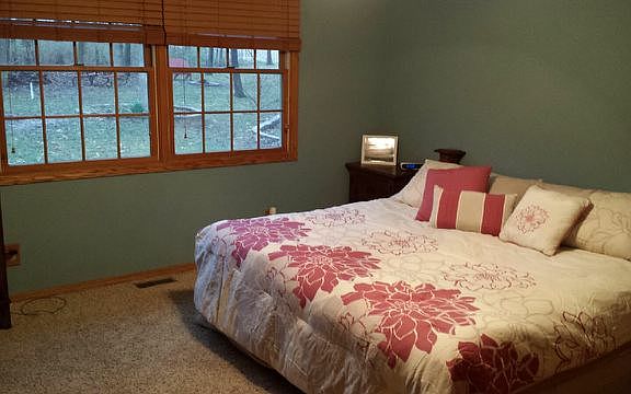 Trying to sell the house on our own, but willing to pay 3% to a realtor who sells the house. Home is located in a wooded subdivision with a lake. Lots of windows, large bay window in the living room, overlooking a wooded walking trail, and a creek. Wrap around porch with a *1,225 sq. ft. extra deep three car garage and a workshop. Landscaped with many perennial flowers and trees. Open concept living room, dining room, and kitchen with vaulted ceiling. Completely remodeled kitchen with new stainless steel matching appliances. Handicapped accessible. New roof in 2012. Lots of storage, extra deep, dry, lighted crawl space. House is 1,484 sq. ft. and Garage is 1,225 sq. ft.
