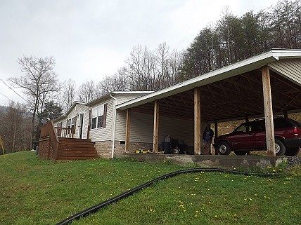 00658-This 1490 sq ft 2000 Clayton 3 bed 2 bath home sitting on 2.4 ac with a gravel driveway leading up to the 2 car carport. This home offers Electric heat and free standing propane fireplace, city water, brick permanent foundation, central air, nice wrap around deck, nice view, outbuilding, and all appliances. This home is move in ready and only minutes to Summersville Lake. $109,900.