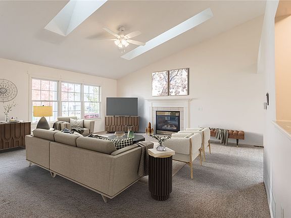 This sun-filled home on Woodsview Way is move-in ready! It's a pristine 2 bedroom, 2 bath ranch in a beautiful community. This easy-to-care-for home features cathedral ceilings, gas fireplace, skylights, heated sunroom, primary suite, 1st floor laundry, covered sitting porch, patio with pergola, oversized garage (484 sqft), and updated lighting throughout. For buyers who desire new flooring, the seller is offering a $2500 credit at closing and a 1-year HSA Home Warranty! The home warranty offers an added level of protection for the buyer! Woodsview/Parkwood Heights is a hidden gem with so much to offer it's unlike anything you've seen! The low HOA covers access to the Community Center with dining options, an exercise room, library, party rooms, and a pavilion (garbage collection is also included). A serene nature trail surrounds the community with seating areas and picnic tables. Each month the Community Center offers a calendar of events filled with activities and travel adventures. Woodsview owners have a yearly garage sale and picnics! Close to shopping, dining & the Thruway!