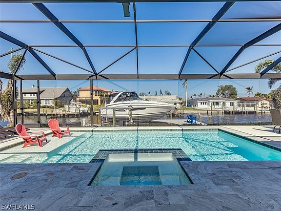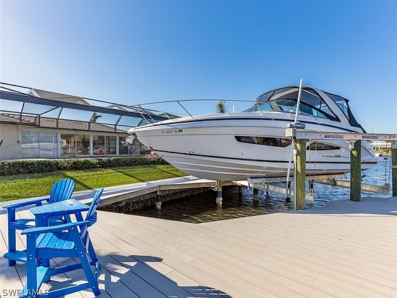 Impeccably maintained, bright, tropical 2 bed, 2 bath, 2 car garage heated pool/spa home in prestigious Palm Acres! Check out these upgrades... New tile and flat roof using the “hybrid system” Feb. 2021. Roof upgraded to strapped and best secondary water barrier available for best insurance rating. New 24k boat lift, 775 sq ft synthetic dock, and 50 AMP 240v shore power, Jan. 2021. Lift has remote and auto stop. Gear driven lift motors. New pool and spa, June 2020 with travertine decking, 10’ cage walls, 40’ picture windows, sun shelf, variable speed pump, heat pump, chlorine generator, color changing LED lighting, and aqua link system. Remodel of 2nd bathroom, lanai, sewer line converted to PVC, double front impact doors, porcelain plank garage flooring. Kitchen, flooring, and master bath remodeled in 2015. New main 4.5 ton A/C system and 1.5 ton mini split in lanai June 2020. Most windows are impact including front door. Known standard windows are garage (garage door is wind rated), 2nd bath window, and lanai slider doors. New blinds on all windows. Interior freshly painted. Immediate Gulf access via Little Shell Creek. Boat to restaurants, beaches and the barrier islands.